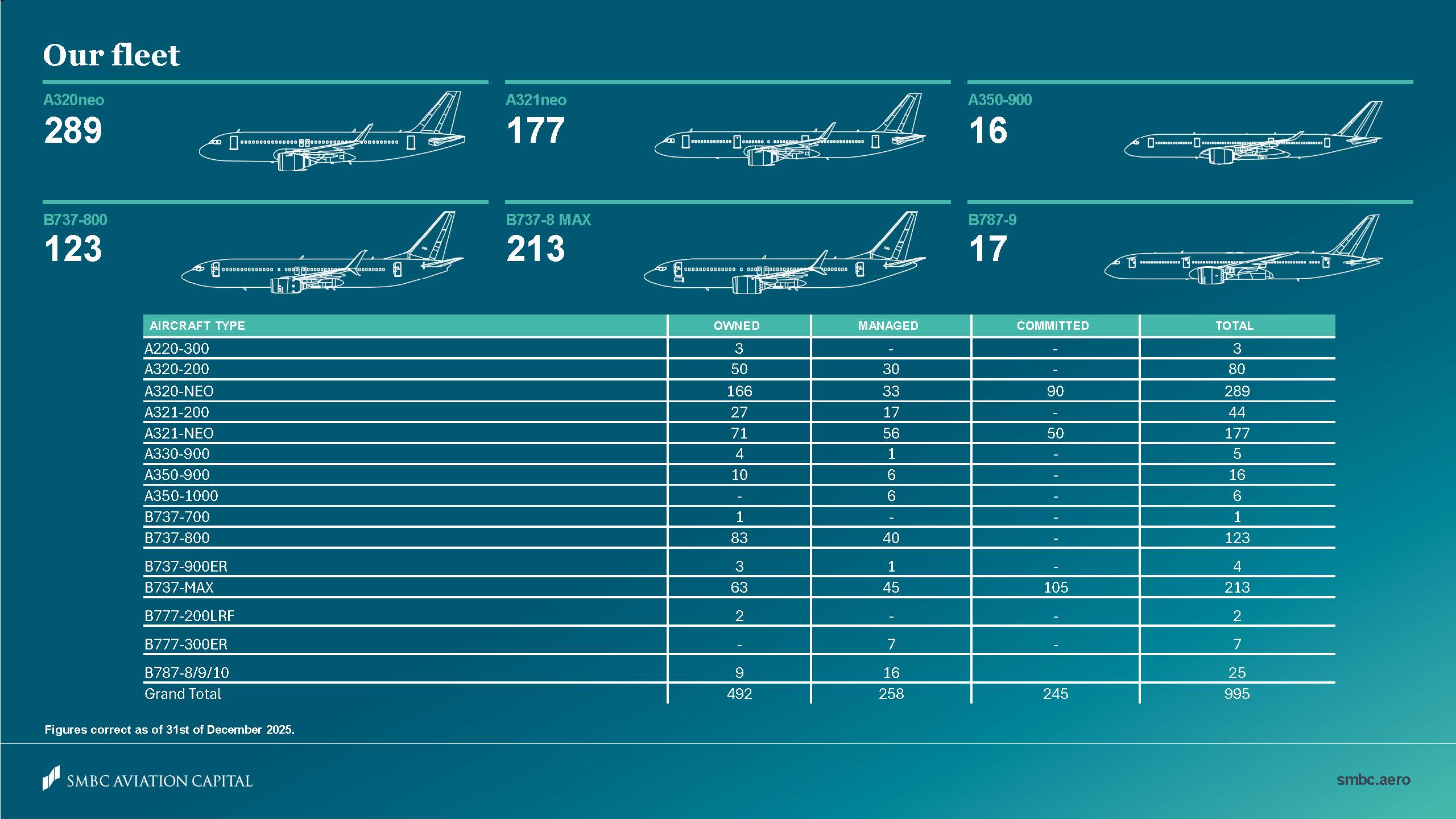 Owned, managed and committed aircraft